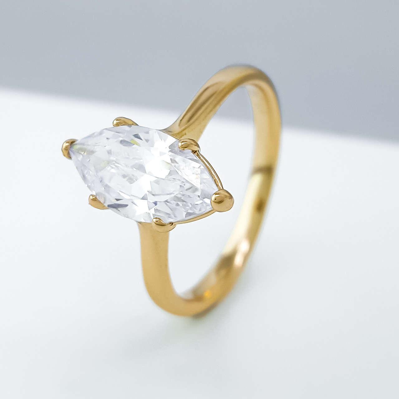 Кільце "Овал" з мигдальним циреонієм; р.17,5; р.18; р.20; медичне золото Xuping 18К